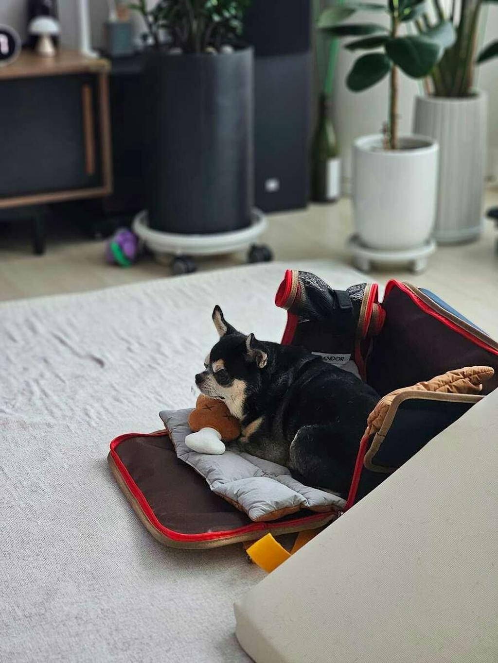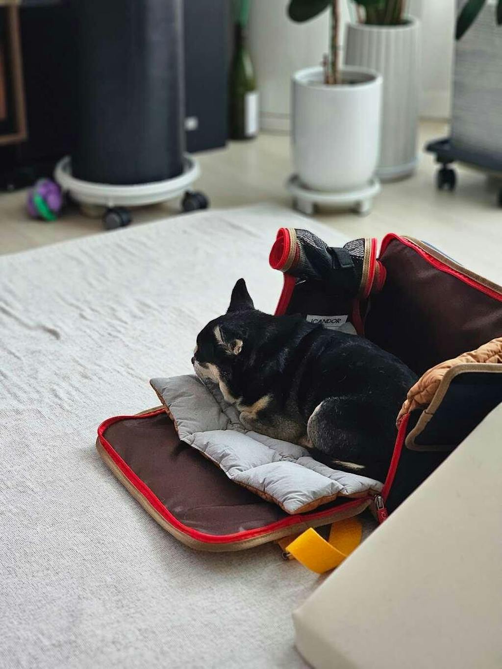 Crafted from durable and waterproof polyester fabric, the iBag is not only practical but also has a soft feel, adding to its appeal. It's also shock-resistant, doubling as a secure pet seat in a car.