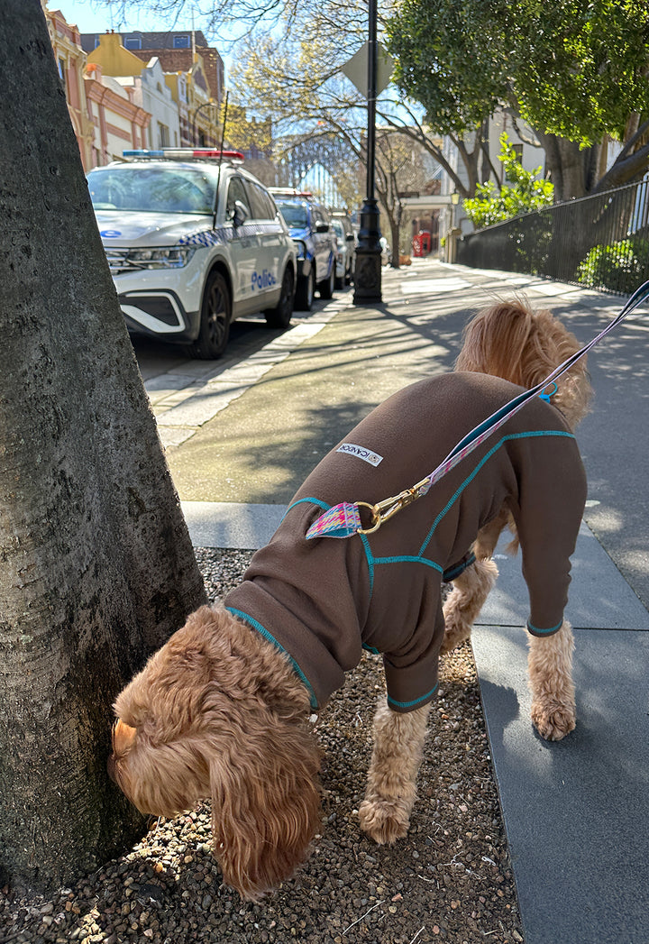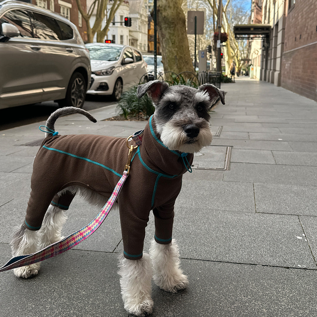 Polar Tweed Snood Suit offers versatile styling with its snood design and features a soft touch, excellent stretch, and superior warmth through double-brushed fabric. This all-in-one wear is designed to provide maximum comfort even for highly active dogs.