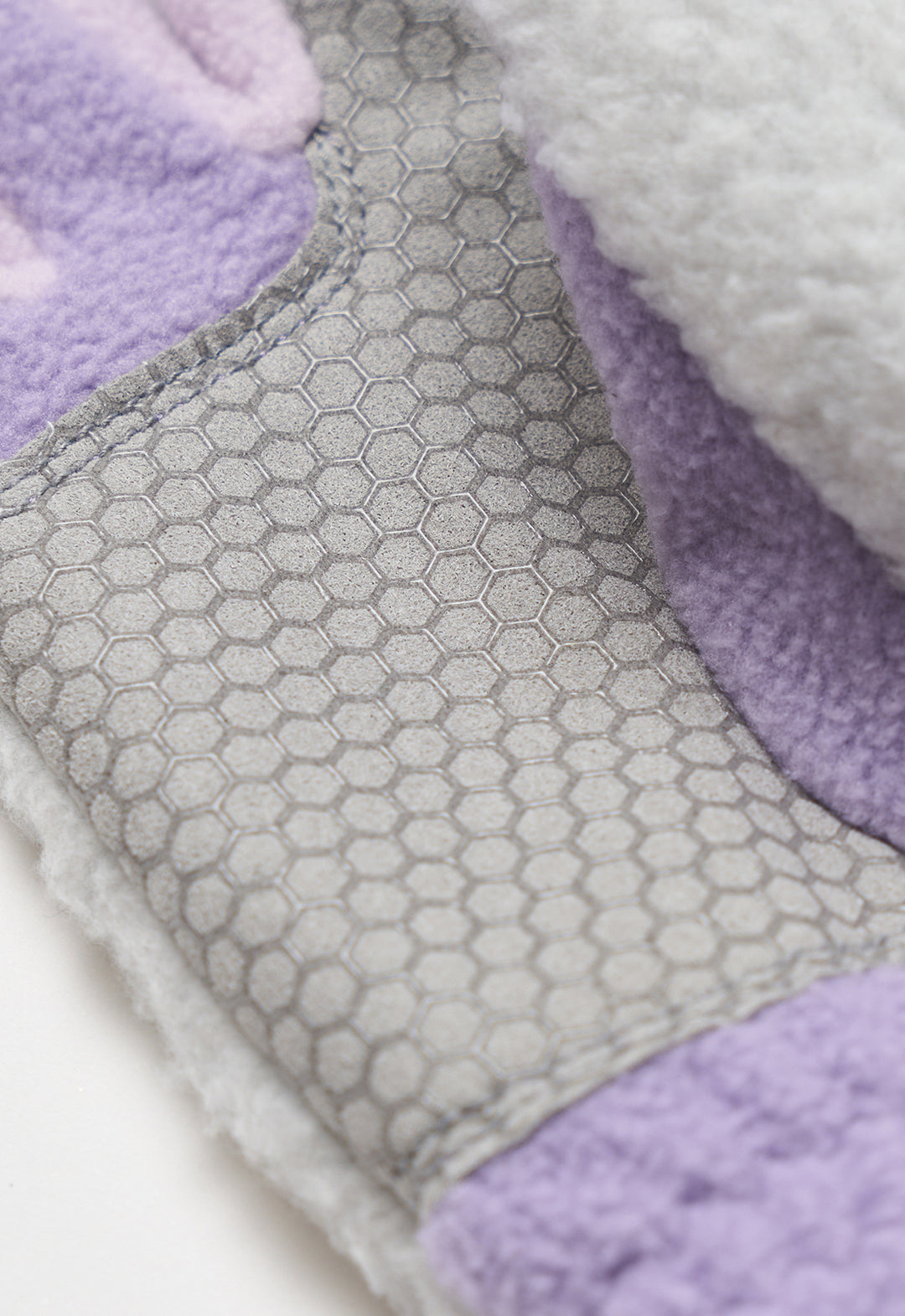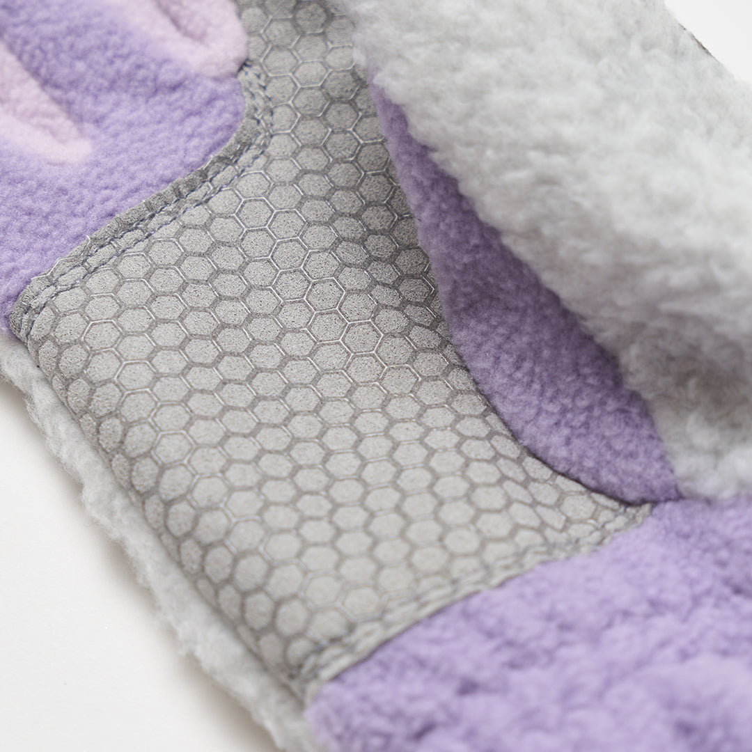 手のひら部分は耐久性の高い素材で補強されており、リーシュの取り扱いによる繰り返しの摩擦にも耐えます。さらに、シリコンプリントが優れたグリップ力を発揮し、滑りを防止します。