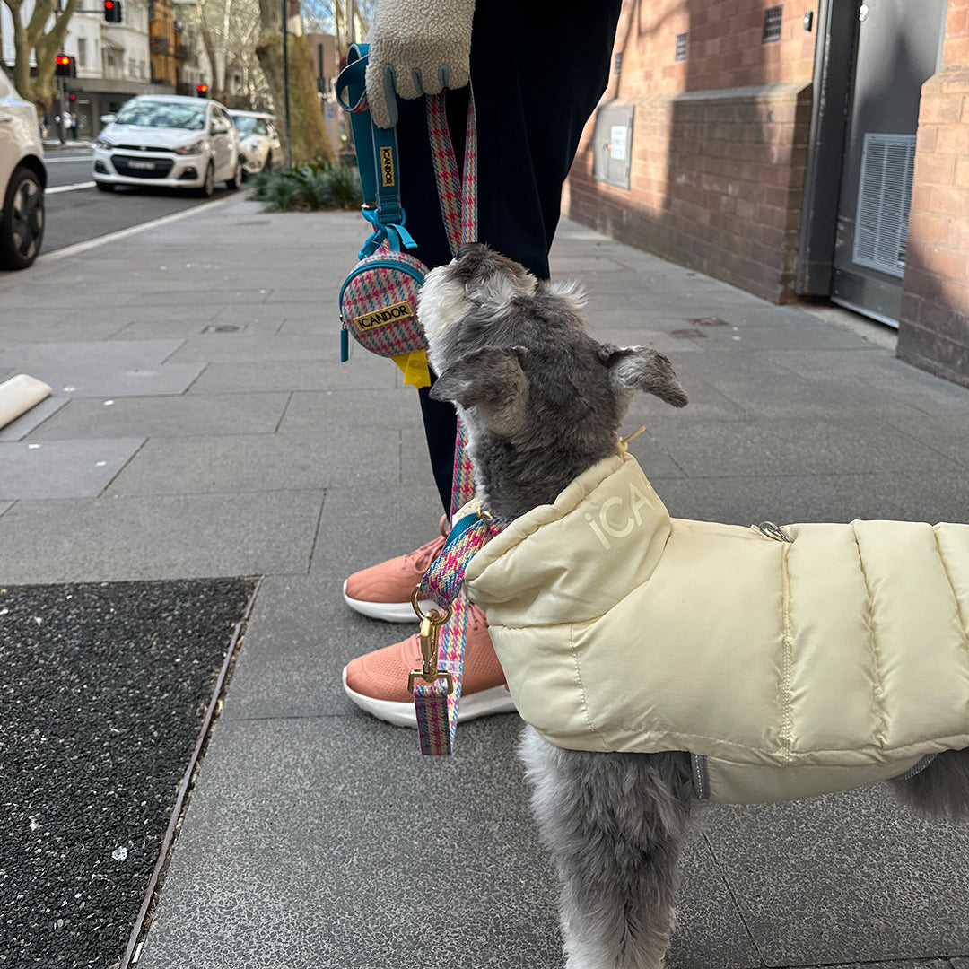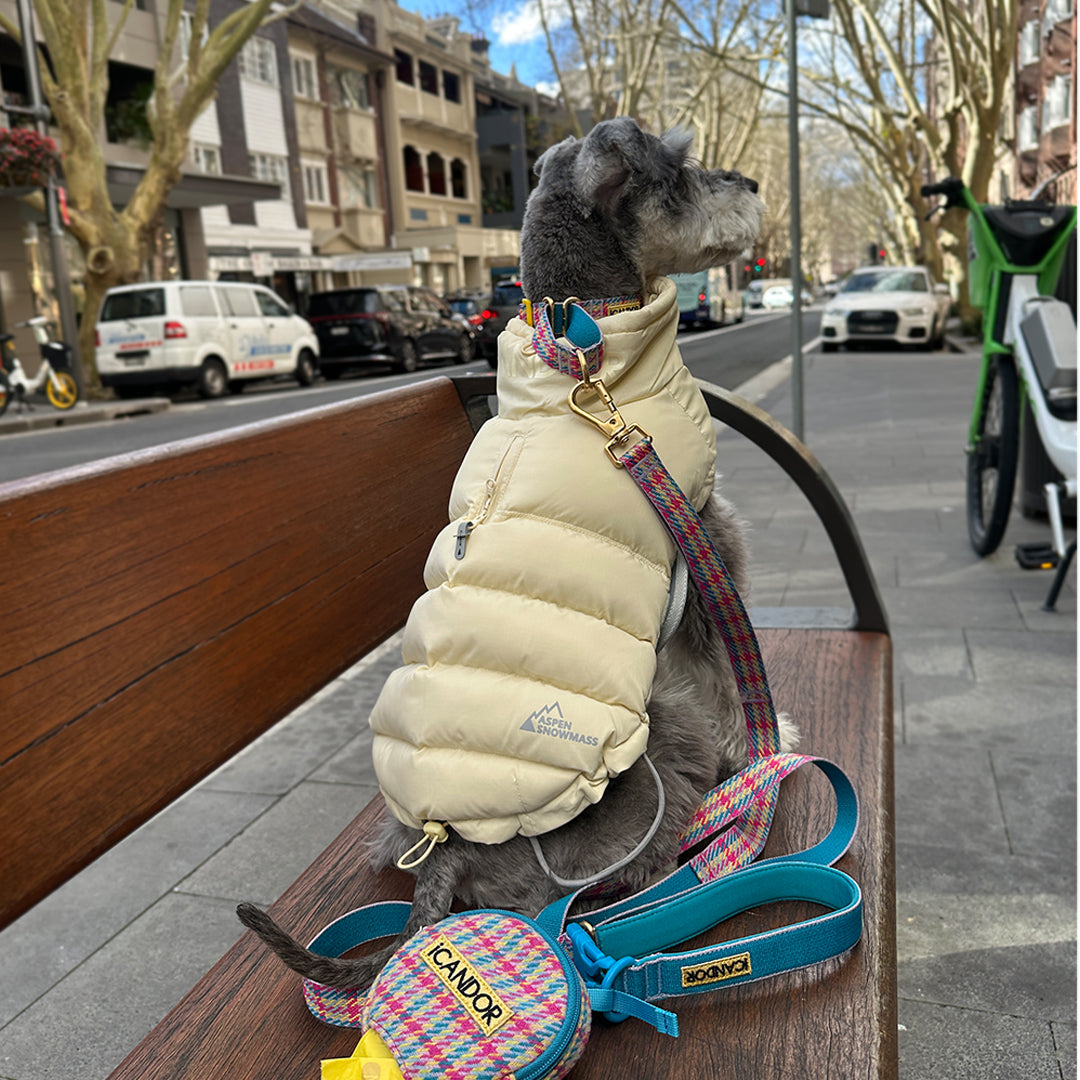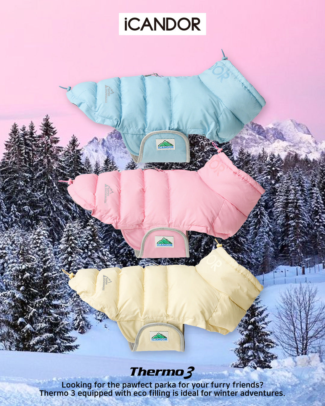コロラド州アスペン スノーマスの豊かな色彩からインスピレーションを得たアドベンチャー パーカー サーモ 3 は、クリーミー バター、ソルティ ピンク、ジェントル ブルーの 3 つの特徴的な色合いでデザインされており、愛犬の冬の冒険に暖かさと現代的な雰囲気をもたらします。