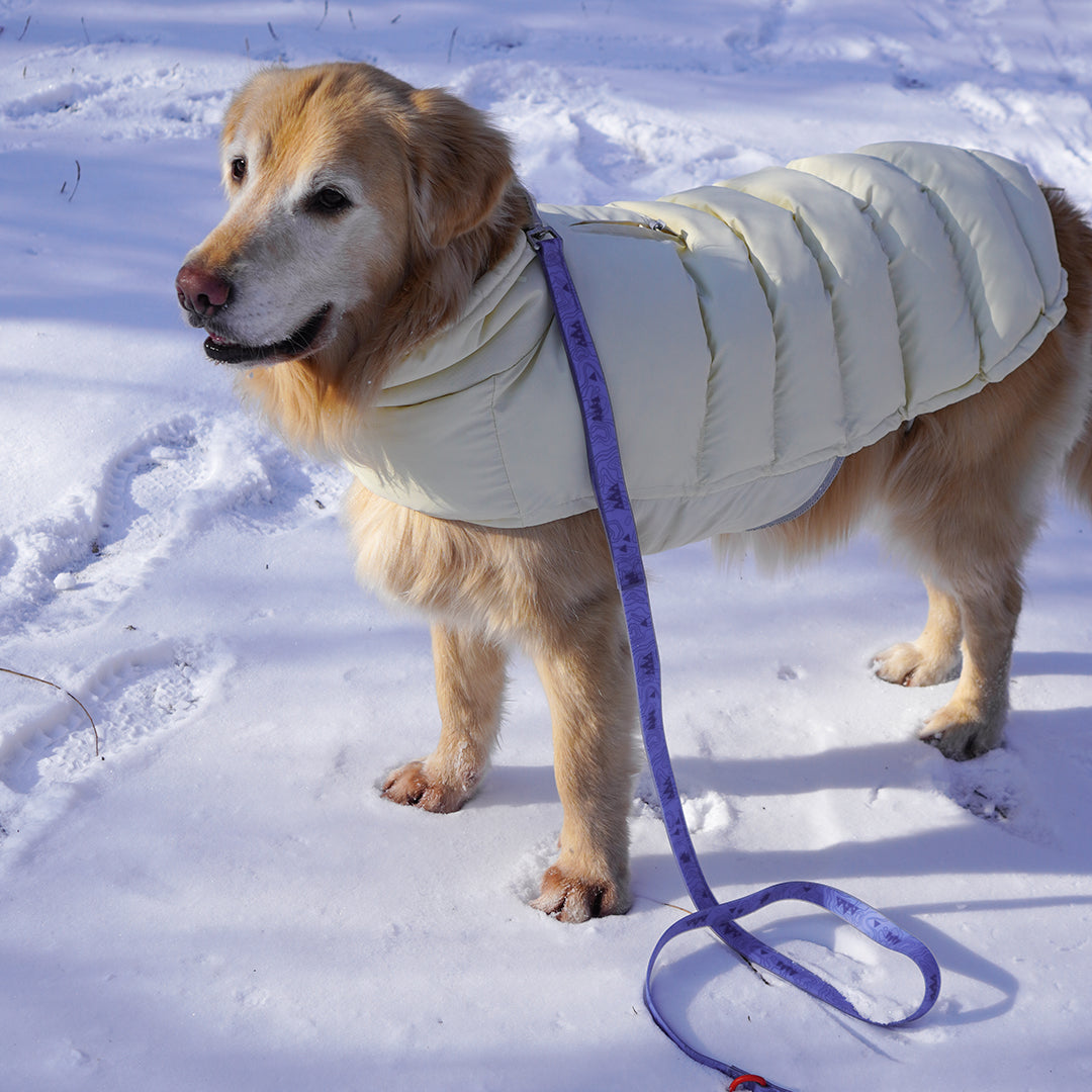 Uber Plusライニングは糸から直接熱を発するため、屋外でのアクティビティ中に効果的な保温機能を発揮します。極寒の中でも愛犬の体温を維持し、安心して冬の冒険に出かけることができます。Weaver Plusサーマルライニングには、コロラド州のスノーマス山にインスパイアされた等高線図のデザインが施されています。